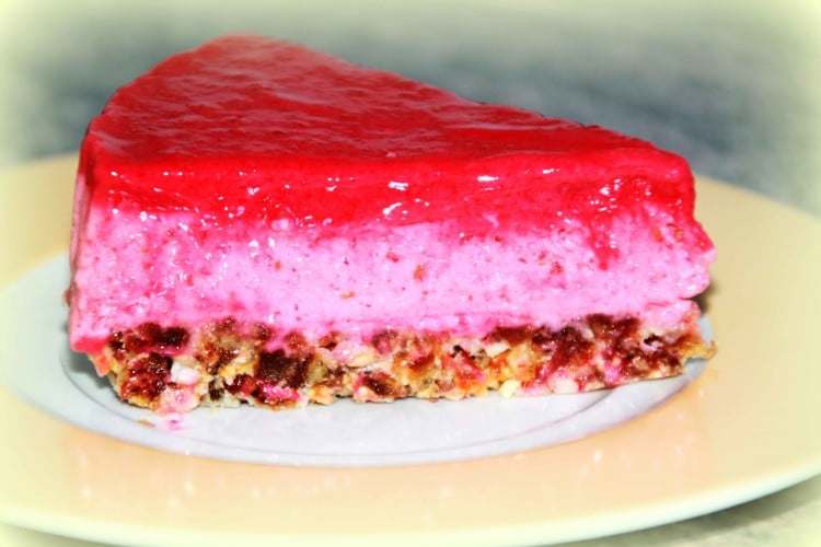 No bake raspberry icebox cake with almond & hazelnut crust. Easy preparation, creamy texture with lots of natural sweetness thanks to dates, bananas and raspberries.
